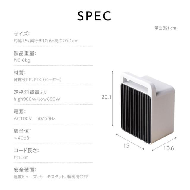 セラミックヒーター 小型 900W 速暖 セラミックファンヒーター 暖房 送風 温風 風量2段階 足元 オフィス 卓上 コンパクト 過熱保護 おしゃれ 節電 PSE認証済み