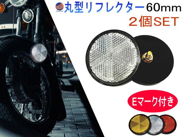 丸型リフレクター 60mm 2個セット 車検対応 サイドリフレクター ネジ止めタイプ M6ボルト EU認証 Eマーク付き DOT 側方反射器 反射警告 バイク 自転車 車 電動バイク オートバイ マーカー 反射板 レフ版 クリア オレンジ アンバー レッド 白 柿 赤