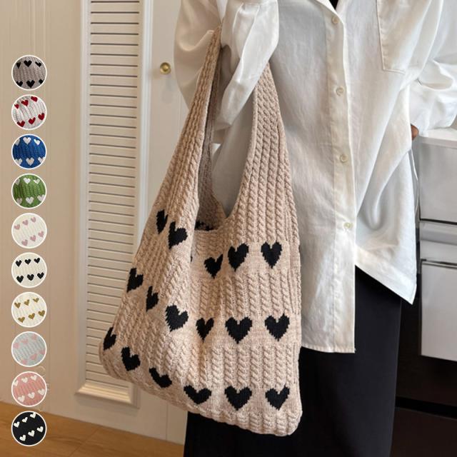 ハート柄ニットバッグ