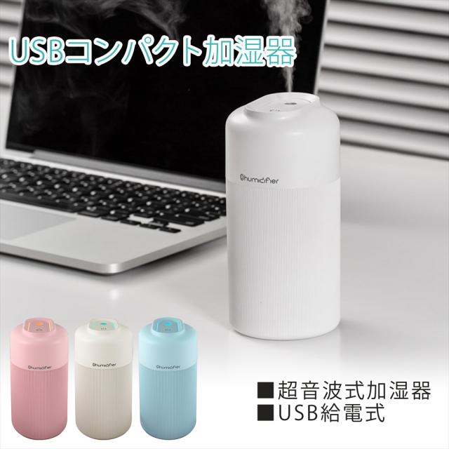 超音波加湿器 加湿器 卓上 コンパクト USB 給電式 350ml ミニ加湿器 ピンク ホワイト ブルー 小型 自動OFF ライトアップ シンプル 乾燥肌対策 送料無料 風邪対策
