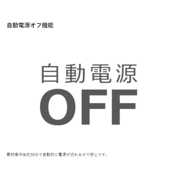 最終操作後約30分で自動的に電源が切れるので安心です。