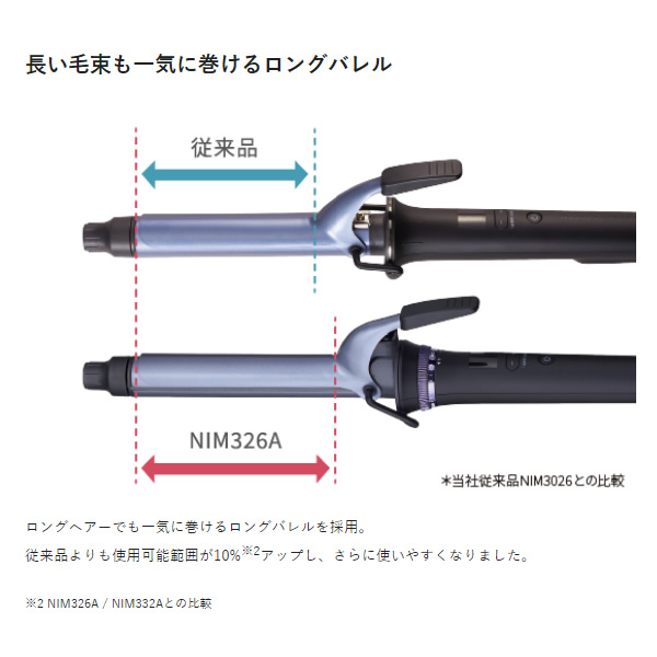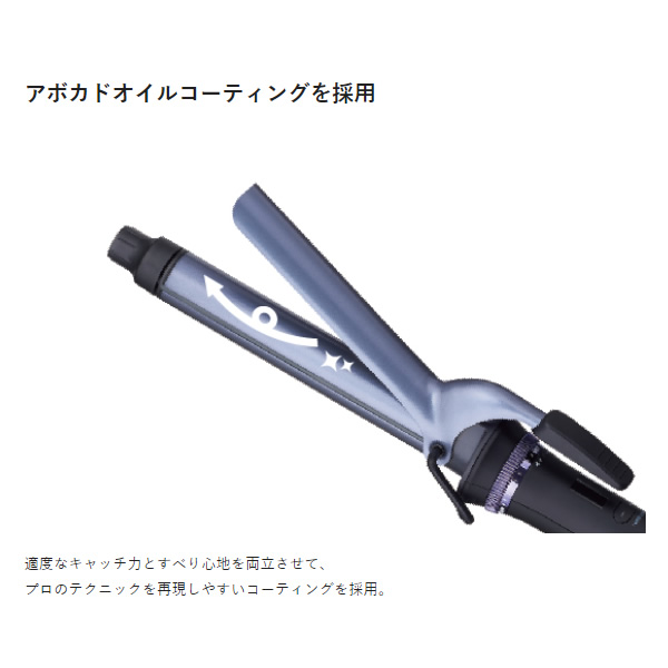 ロングヘアーでも一気に巻けるロングバレルを採用。