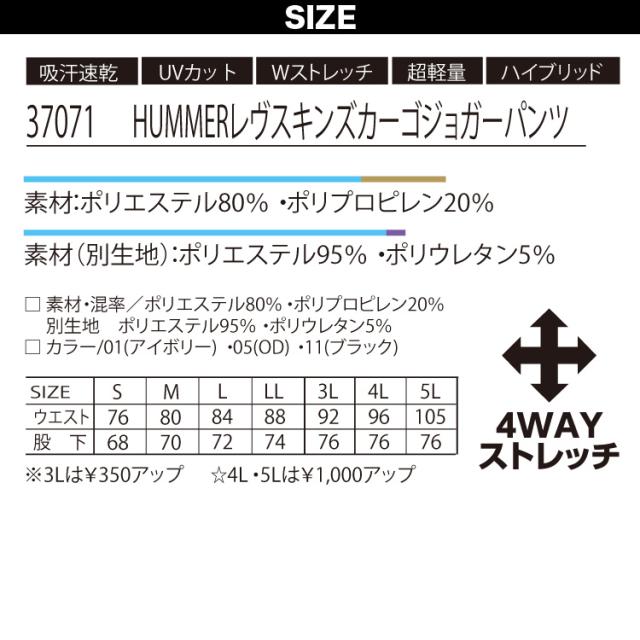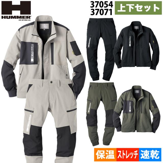 アタックベース HUMMERレヴスキンズジャケット カーゴジョガーパンツ 上下セット 37054 37071 保温 吸湿発熱 吸水速乾ドライ 消臭 作業服 作業着 秋冬 ATACKBASE