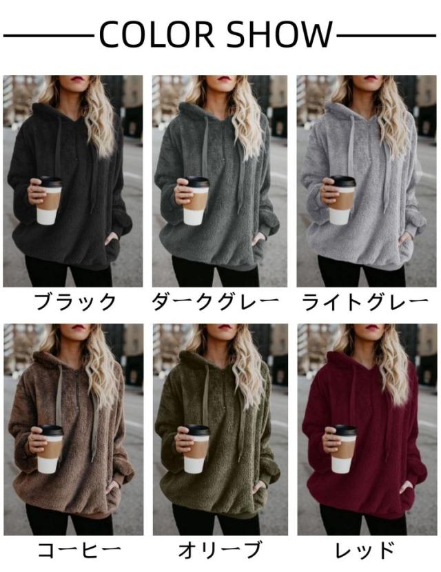 パーカー レディース 大きいサイズ トップス 長袖 ボアパーカー ボア トレーナー 無地 裏起毛 秋冬