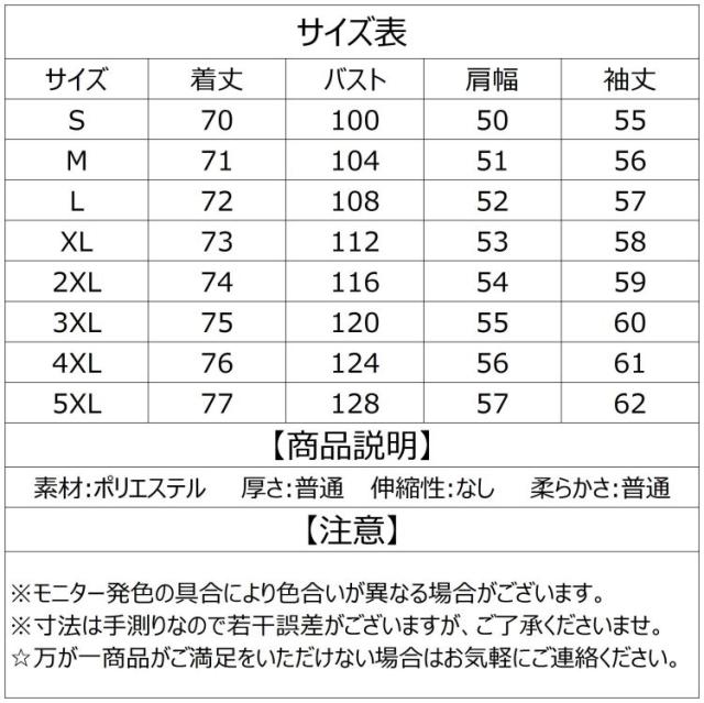 ▼サイズ:S/M/L/XL/2XL/3XL/4XL/5XL(単位:CM)