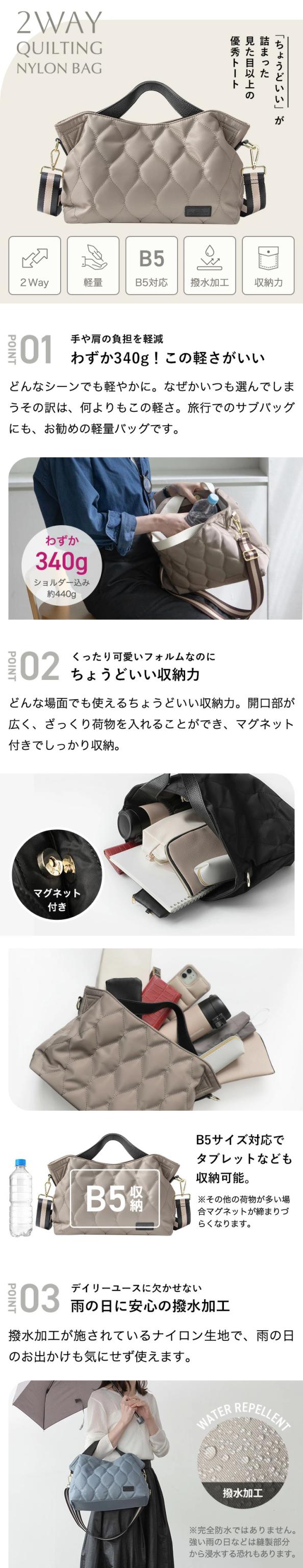 ショルダーバッグ トートバッグ キルティング レディース ナイロンバッグ 軽量 2way トート ショルダー 撥水 ナイロン 斜めがけ おしゃれ LIZDAYS リズデイズ 大人 ハンドバッグ B5 ポケット 多収納 マグネット シンプル きれいめ 通勤 通学 お出かけ【lz-70512】