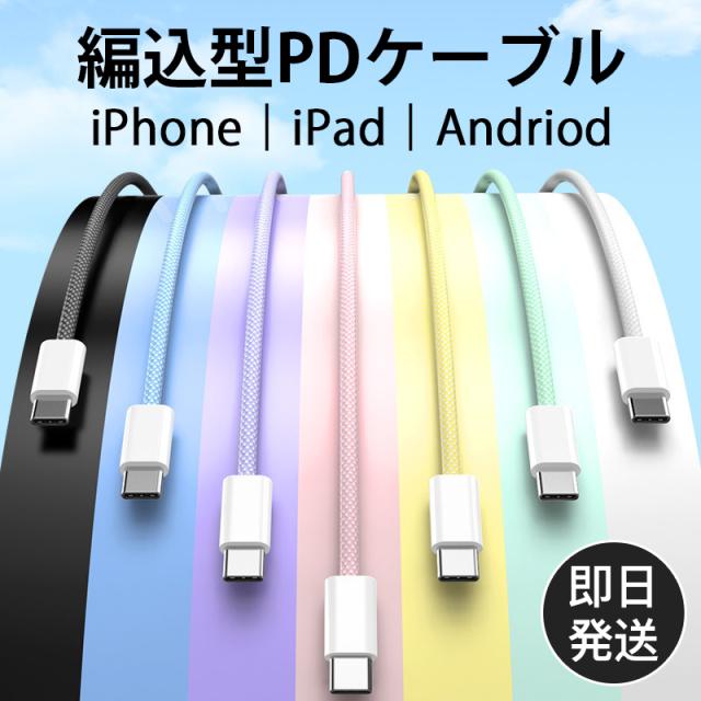 iPhone15/iPad(USB-C)対応!PD(Type-C)急速充電ケーブル、最新の編み込み式、最大100W対応、全部7カラー、1M/2Mからお選びいただけます。