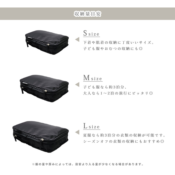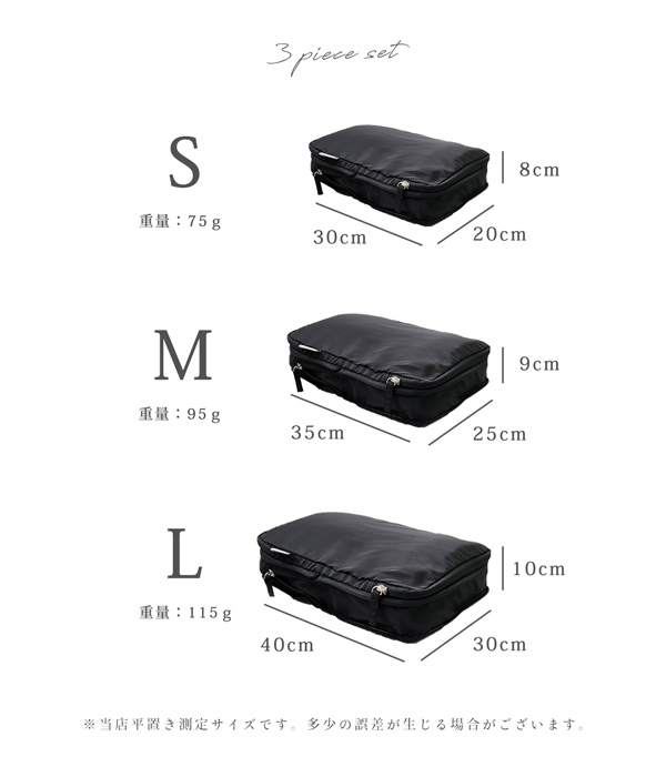 圧縮トラベルポーチS・M・Lサイズの3点セットです。
