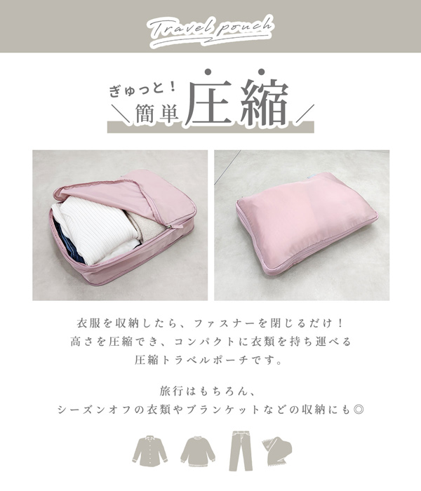 【今なら半額!1,980円】お得な3点セット 圧縮 トラベルポーチ 収納ポーチ 圧縮袋 簡単圧縮 旅行 帰省 里帰り おむつポーチ おむつ入れ 圧縮ポーチ 衣類 収納 衣類圧縮袋 コンパクト ファスナー 国内旅行 海外旅行 メンズ レディース 便利グッズ 送料無料 生活雑貨