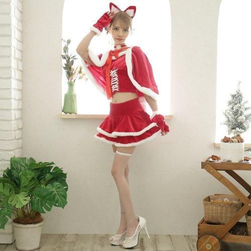 かわいいフレアスカートのサンタガール風コスプレ(COSPLAY)。