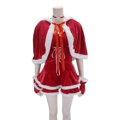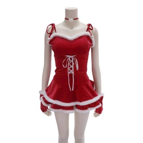 【グラシア】 コスプレ 衣装 コスチューム 仮装 セクシー キュート コス サンタガール キュート フレアスカート フレア ミニスカ レースアップ ミニ丈 レース レッド フリーサイズ