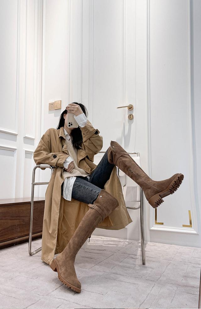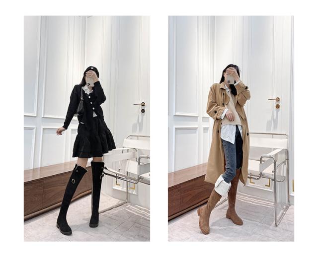 ロングブーツ レディース ブーツ 厚底 スノーブーツ 防滑 太ヒール ストレッチブーツ 4cm 歩きやすい 美脚 シューズ 秋冬