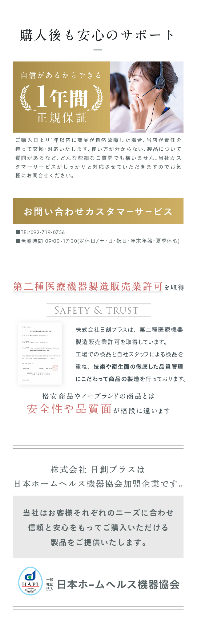 ●使用中、身体に異常を感じたときは直ちに使用を中止し、医師に相談してください。