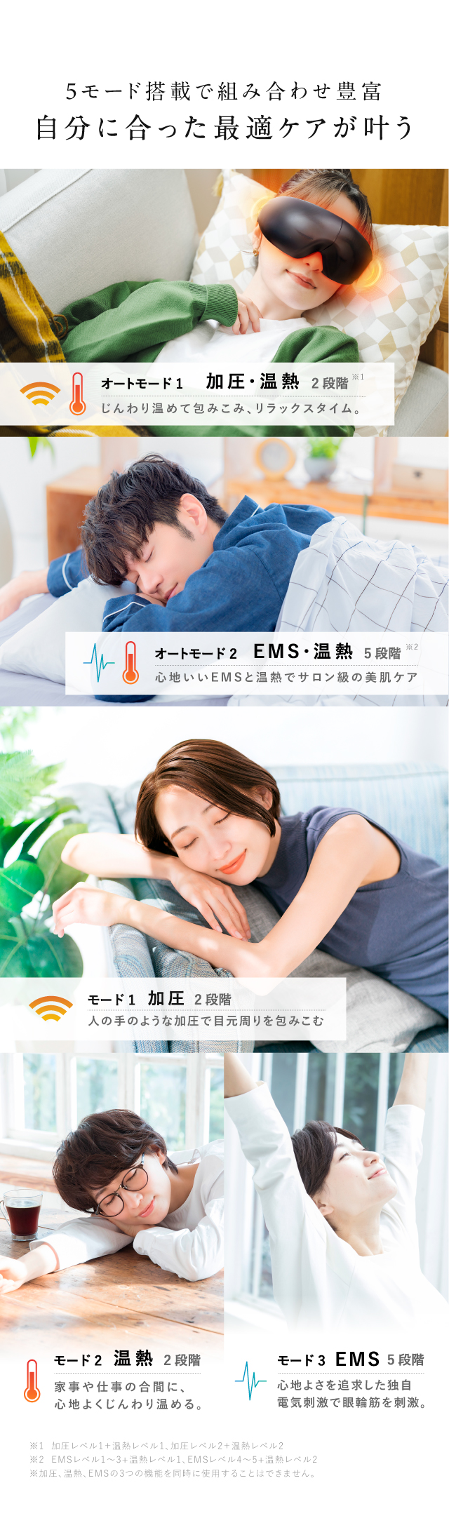 EMSアイマッサージャー EMSホットアイマスク 目元美顔器 EMS EYE RELAX 充電式 コードレス マッサージ機器 女性 男性 ギフト プレゼント 実用的 目元エステ器 温熱 加圧