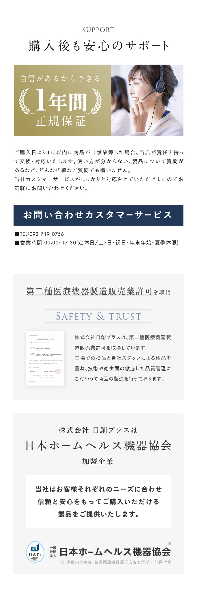 ●使用中、身体に異常を感じたときは直ちに使用を中止し、医師に相談してください。