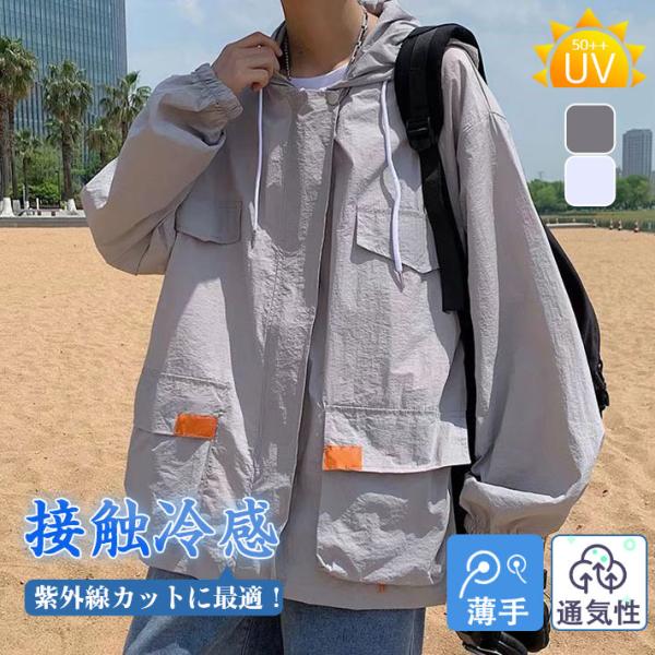 ラッシュガード メンズ UVカットパーカー 紫外線カット ゆったり 学生 UVカット 薄手 アウトドア 長袖 フード付き 日焼け防止 冷感 体型カバー