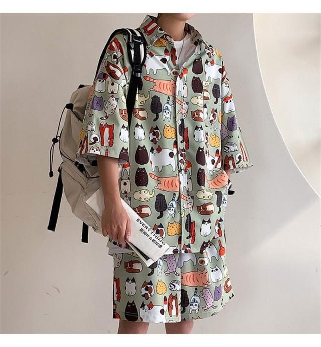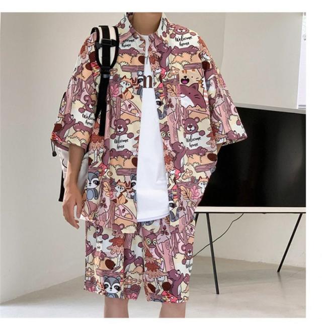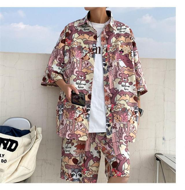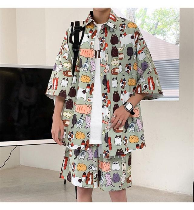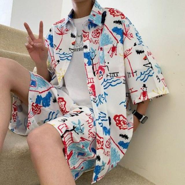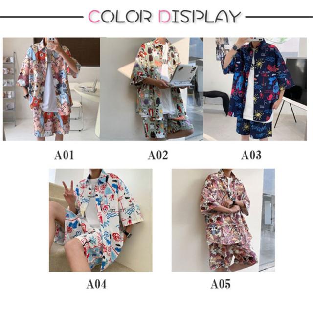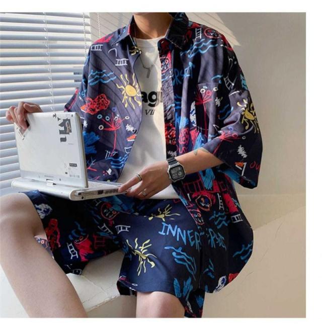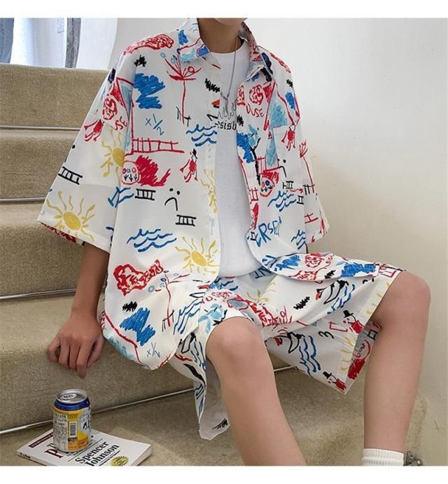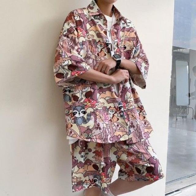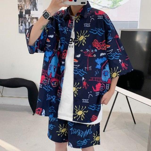 セットアップ メンズ ジャージ 2点セット 柄シャツ ジャージセット ルームウェア 部屋着 ゆったり 薄手 涼しい 夏新作 大きいサイズ 送料無料
