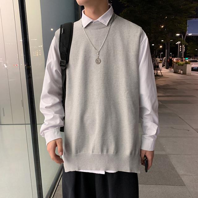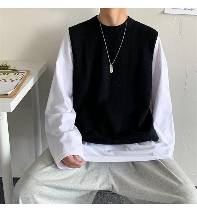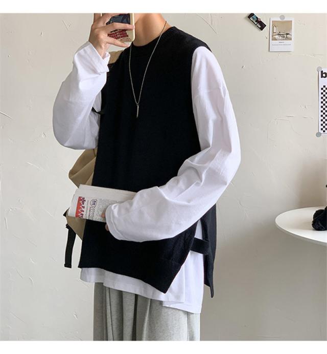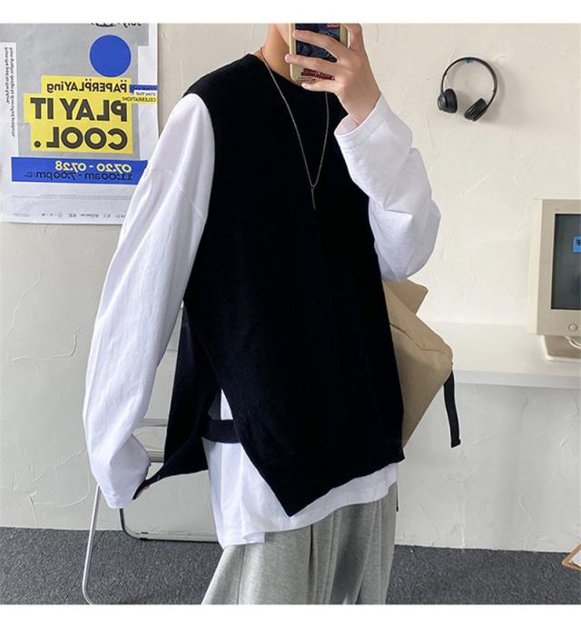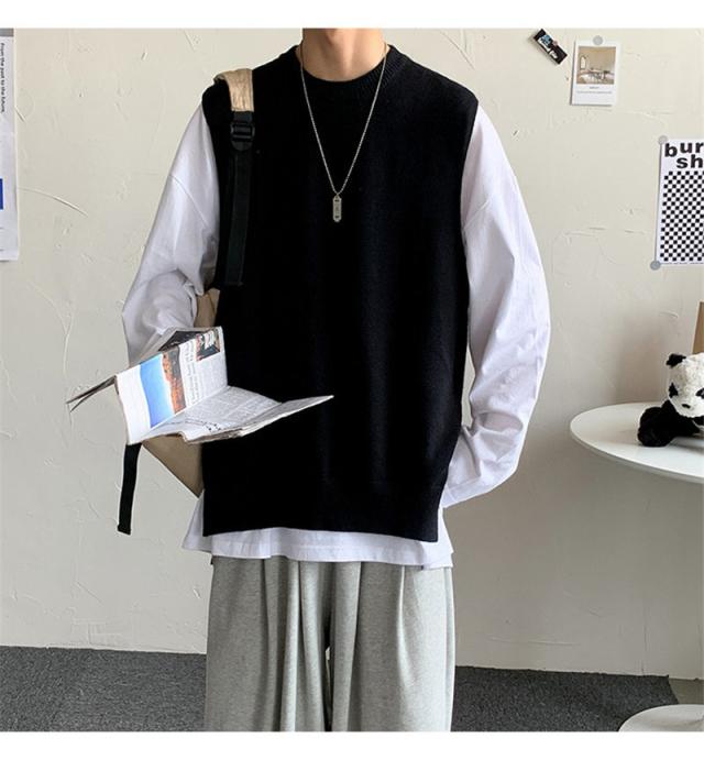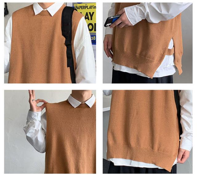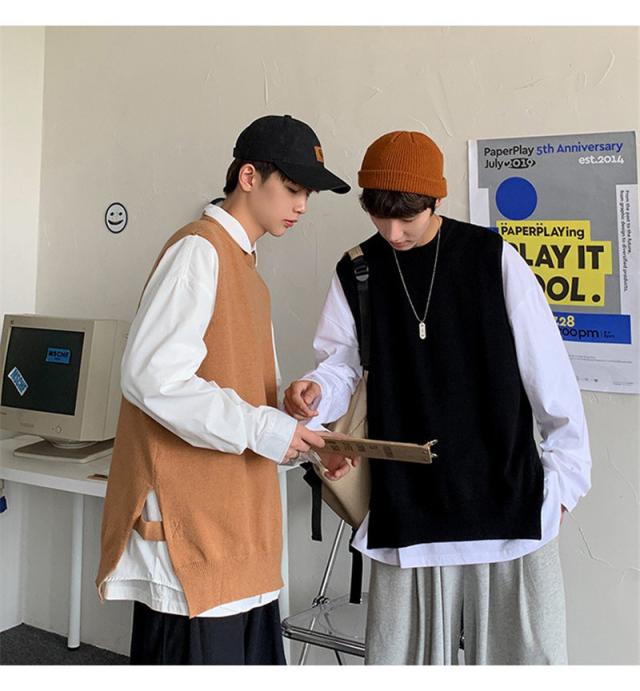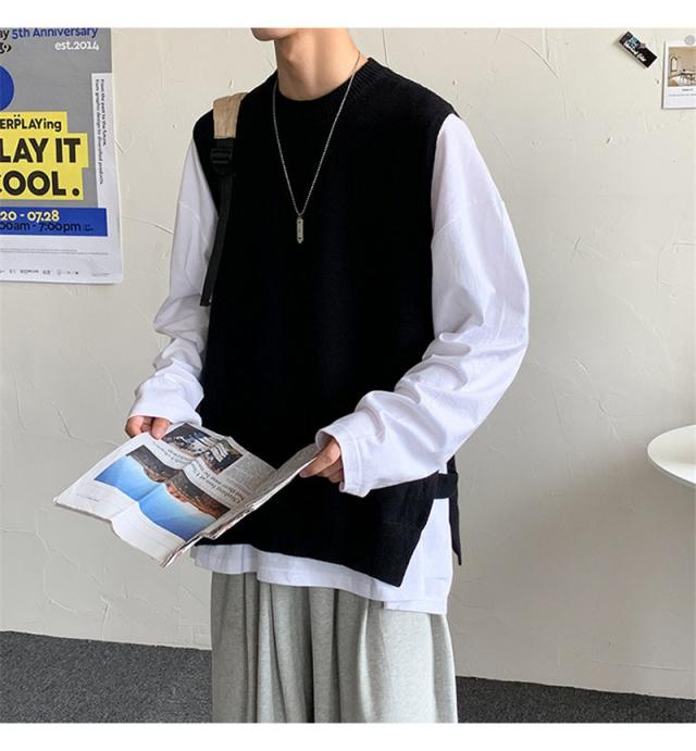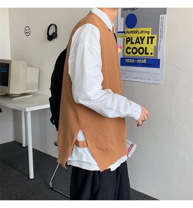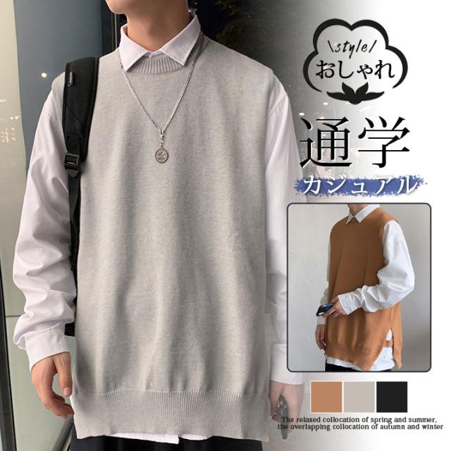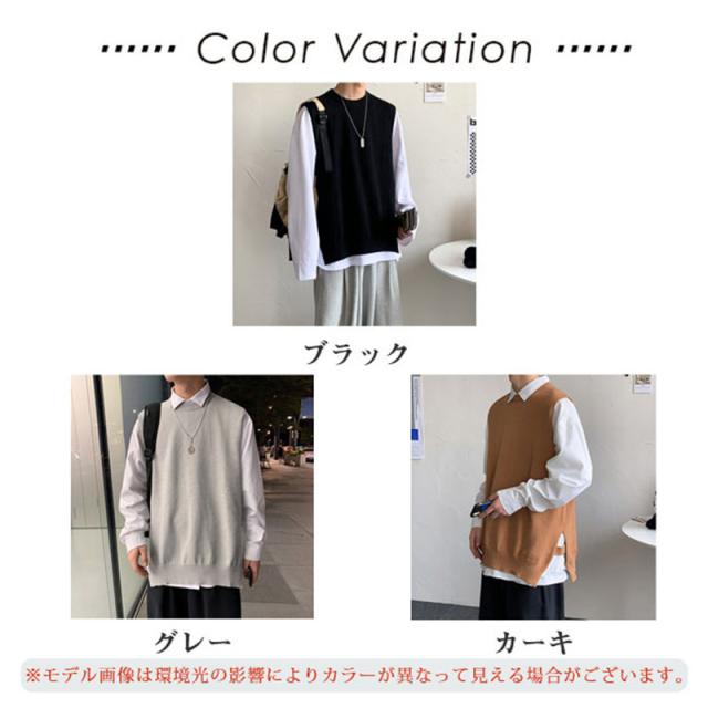 ベスト ニットベスト Vネック スリット セーター ベストセーター 学院風 メンズ 男女兼用 ゆったり 重ね着 秋冬 保温 シンプル 無地 送料無料