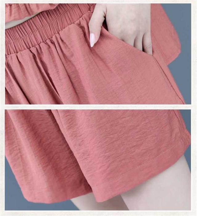 セットアップ レディース 夏服 カジュアル コーデ トップス ブラウス tシャツ ゆったり 体型カバー 短パンツ きれいめ おしゃれ 着痩せ 通勤