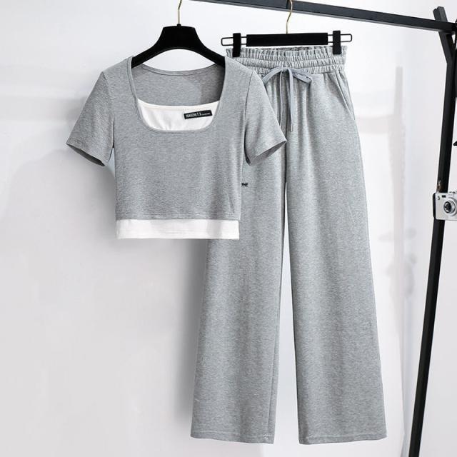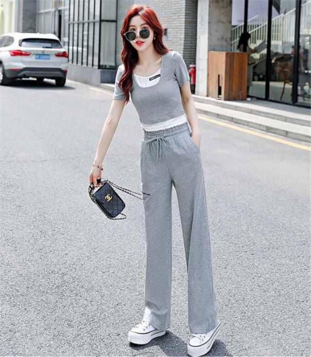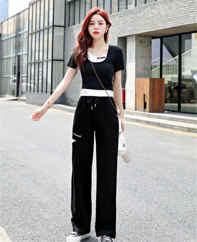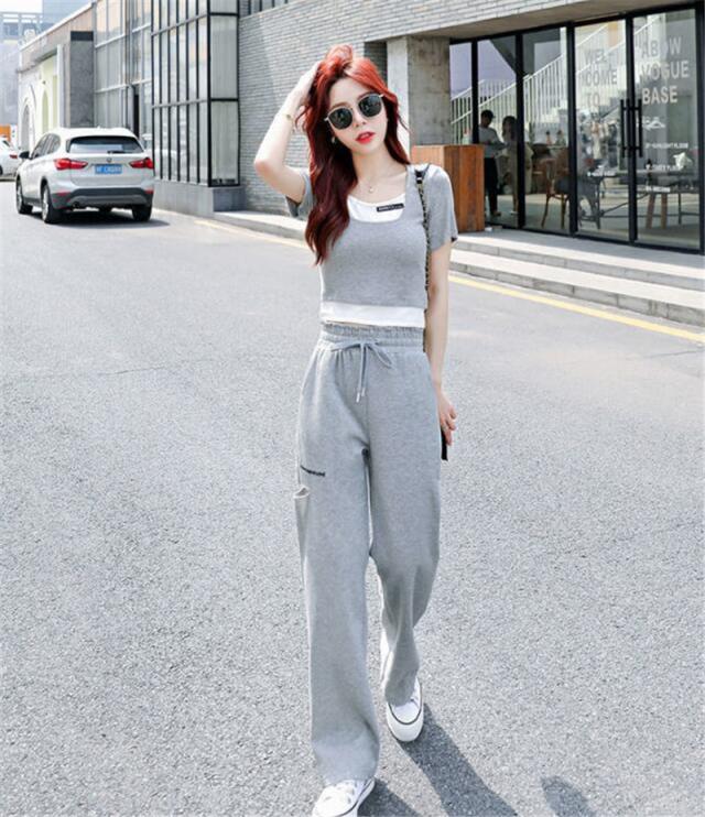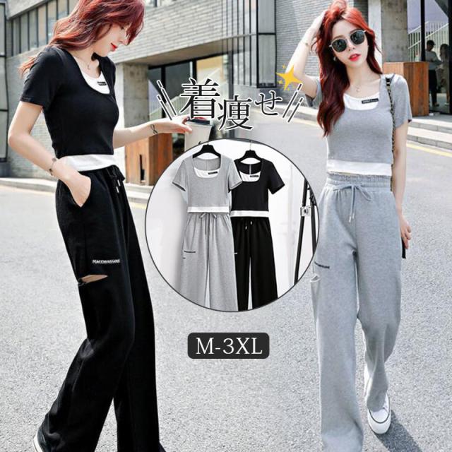 セットアップ レディース 夏服 カジュアル コーデ トップス ブラウス 運動 tシャツ ガウチョパンツ きれいめ おしゃれ 着痩せ 通勤 新品