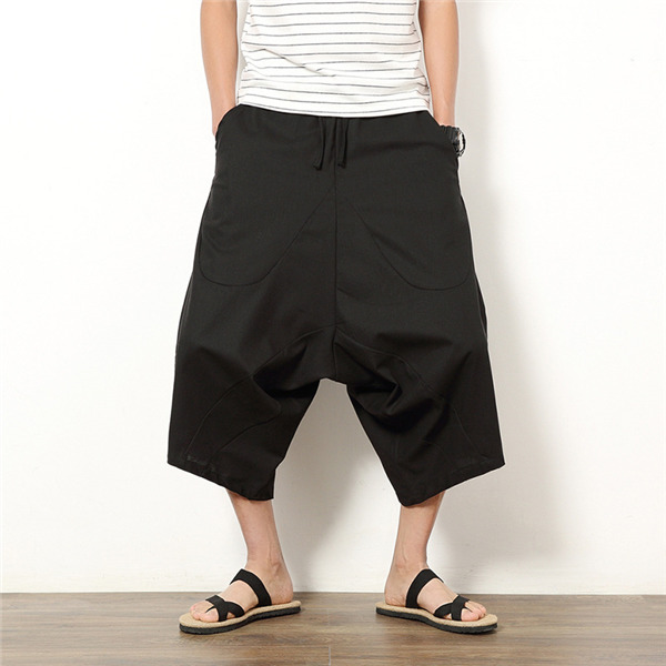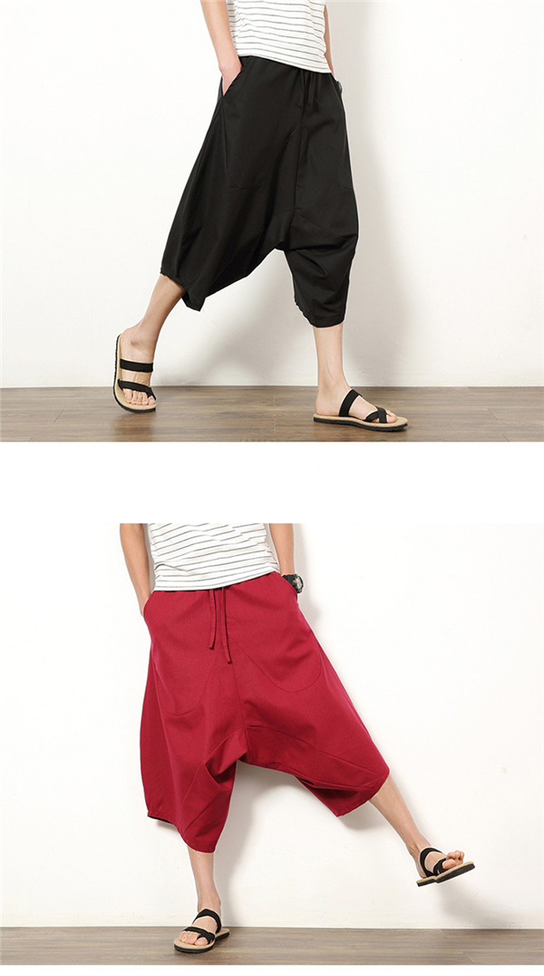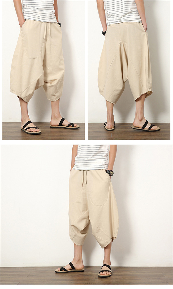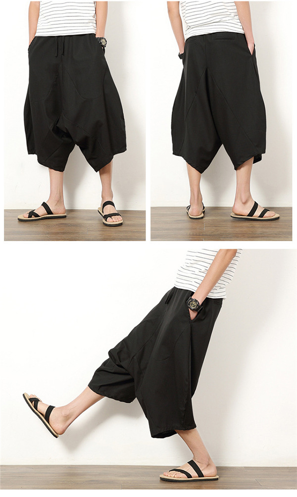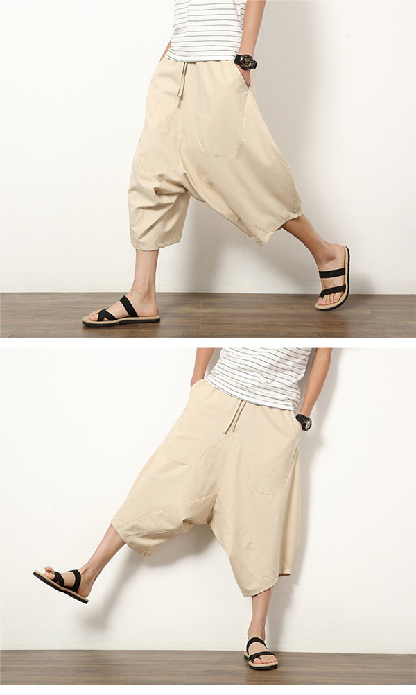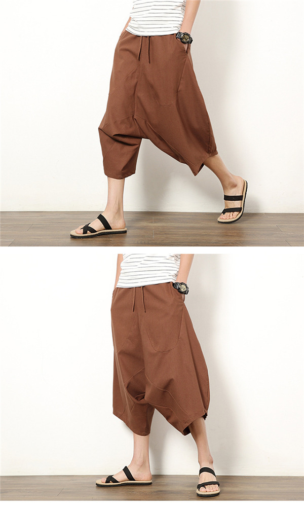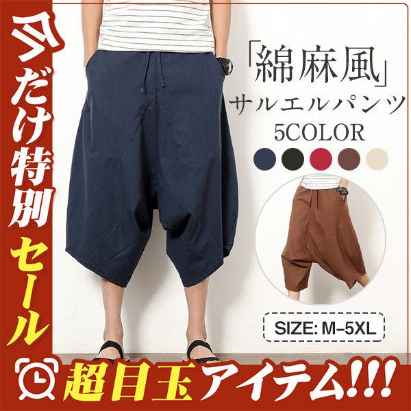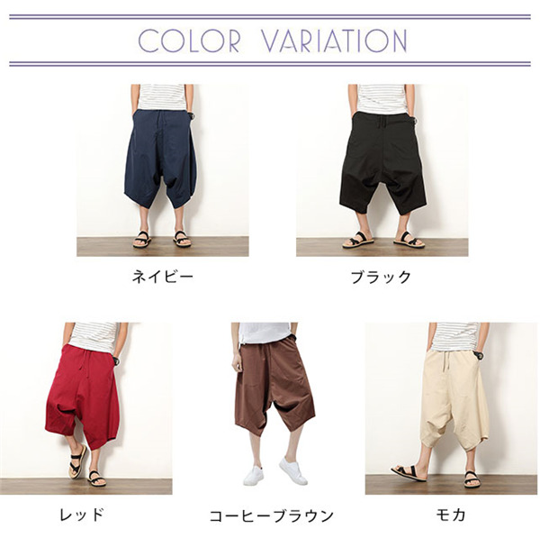 サルエルパンツ ワイドパンツ メンズ ボトムス 無地 7分丈 ビーチ 綿麻風 カジュアル ガウチョパンツ 薄手 快適 ゆったり 涼しい 大きいサイズ