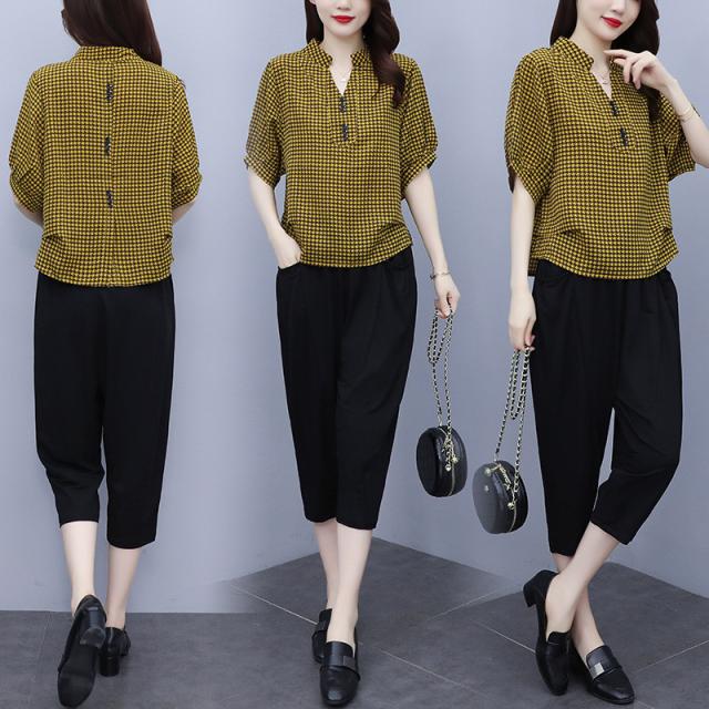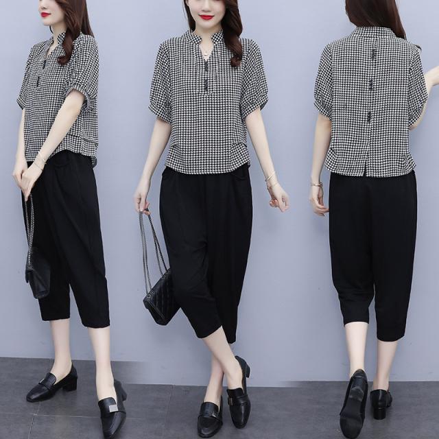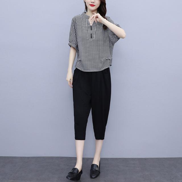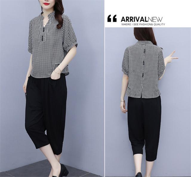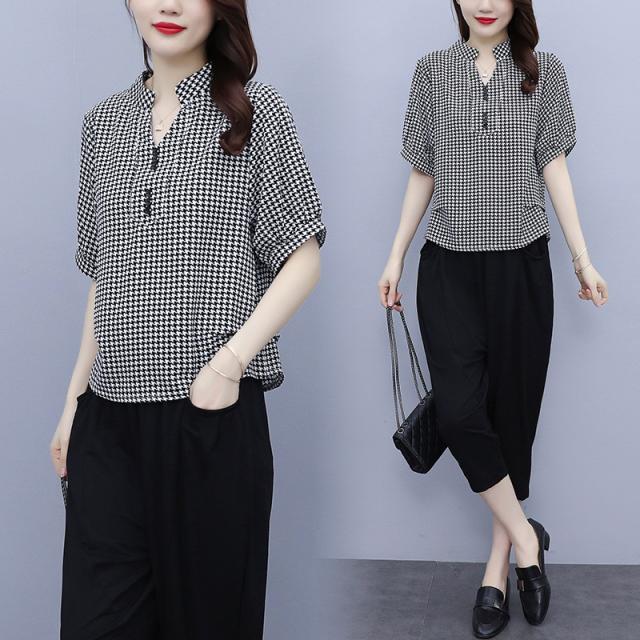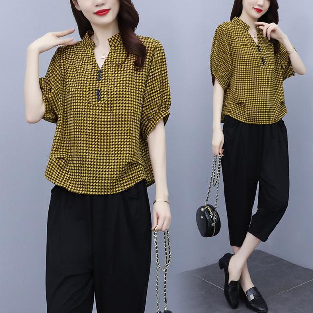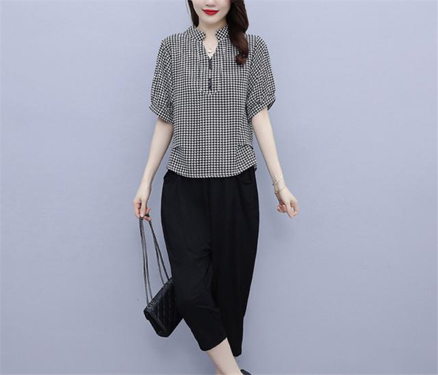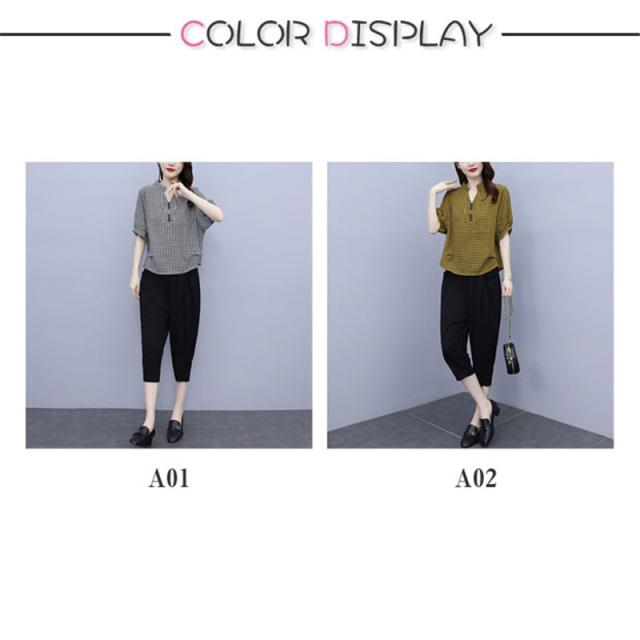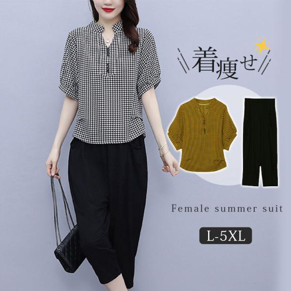 セットアップ レディース 夏服 カジュアル チェック柄 コーデ トップス ブラウス tシャツ 七分丈 きれいめ おしゃれ 着痩せ 通勤 新品 母