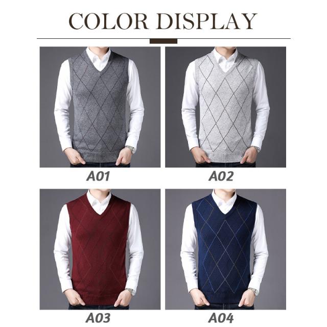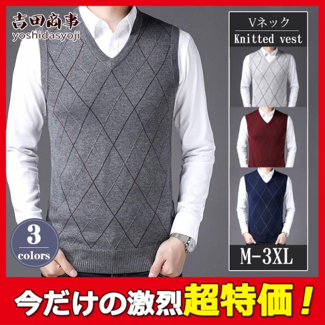 ベスト メンズ ニットベスト Vネック セーター 幾何学模様 敬老の日 秋冬 無地 暖かい シンプル 重ね着 トップス 秋新作 洗える 大きいサイズ