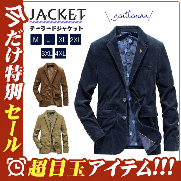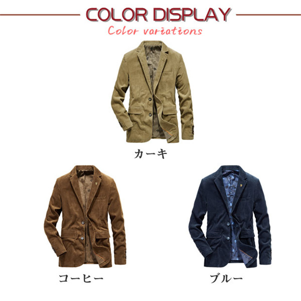 テーラードジャケット メンズ 無地 コーデュロイ スーツ ブレザー ジャケット スリム 2ボタン 紳士服 ビジネス カジュアル 通勤 春秋 ロング