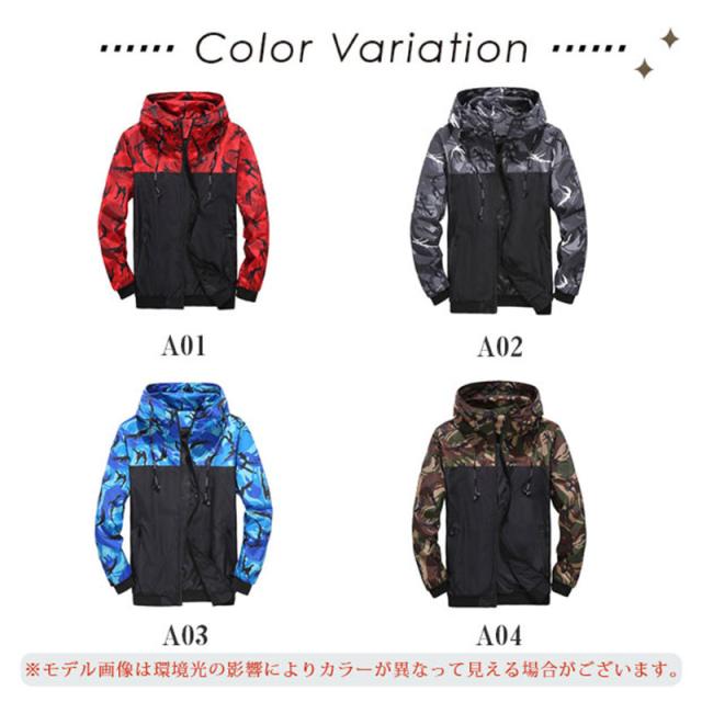 ウインドブレーカー メンズ マウンテンパーカー ジャケット ブルゾン 薄手 迷彩柄 登山 ブルゾン 大きいサイズ アウトドア おしゃれ 春秋 送料無料