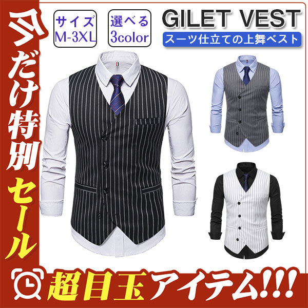 ジレベスト ベスト メンズ チョッキ ビジネス ボーダーベスト スーツベスト 前開き ストライプ 紳士服 通勤 フォーマル オフィス 面接 仕事 秋物