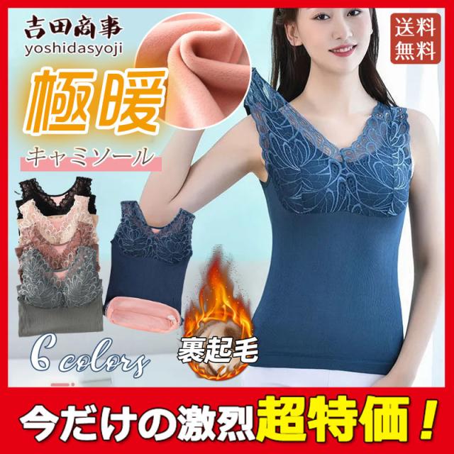 キャミソール レディース 発熱インナー カップ付き 暖かい パッド入り 防寒 秋 冬 美ライン ブラ 重ね着 ボア付き ノースリーブ ナイトブラ