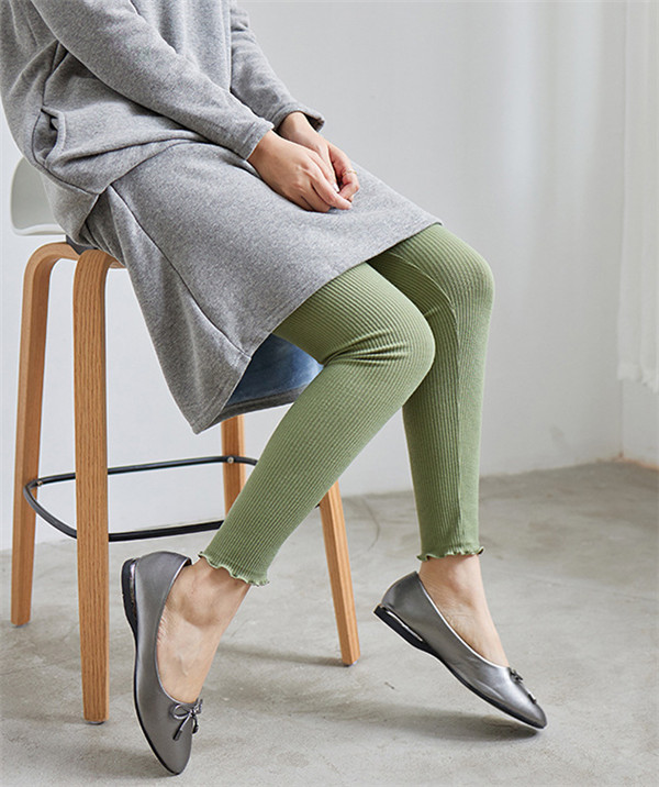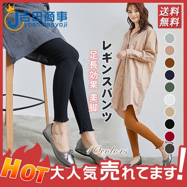 年末セール レギンス レディース リブ 裾フリル ボトムス ストレッチ レギンスパッツ 無地 インナー 足長効果 美脚