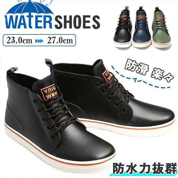 レインシューズ レインブーツ メンズ スニーカー ハイカット 防水 防滑 軽量 厚底 作業靴 防水力抜群 アウトドア おしゃれ 梅雨対策 雨の日