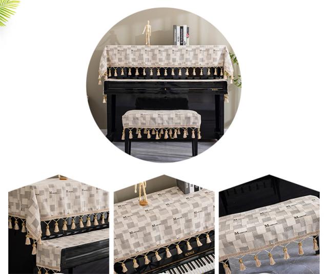 ピアノトップカバー ピアノカバー ハーフカバー チェック柄 防塵 モダン シート オシャレ レース アップライト 保護 エレガント 優雅 ピアノ掛け