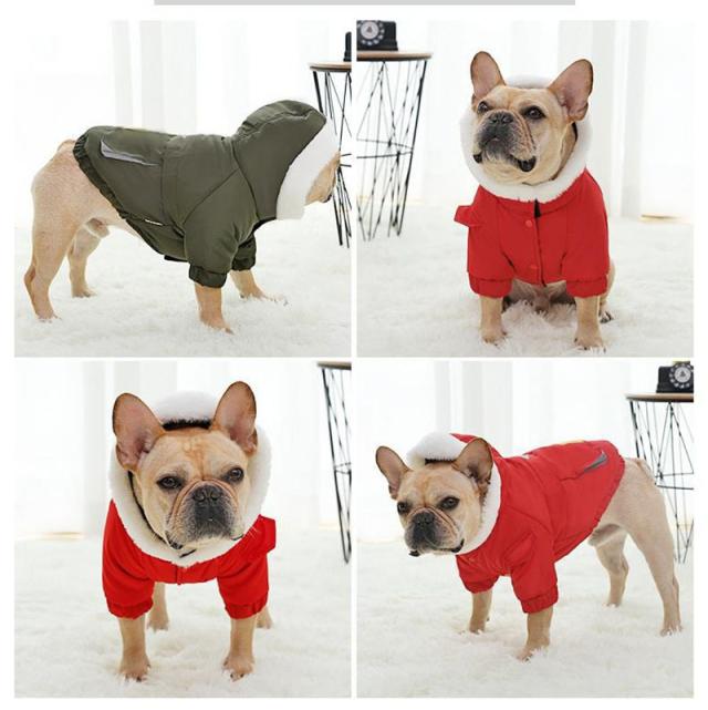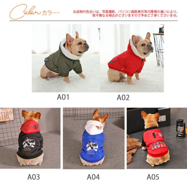犬服 中型犬用 ブルゾン フード ジャンパー フレブル フレンチブルドッグ ブルドッグ パグ 送料無料 秋冬 アウター 防寒着 保温 おしゃれ 無地