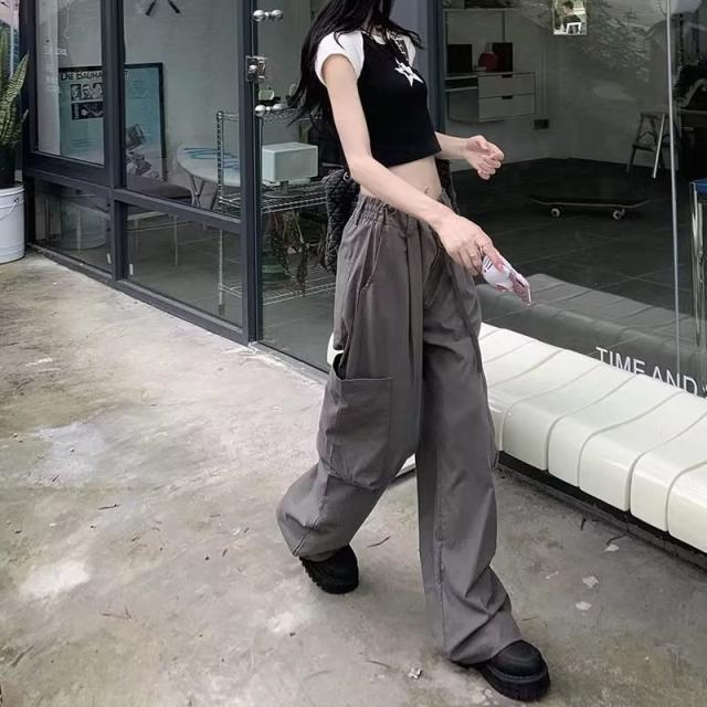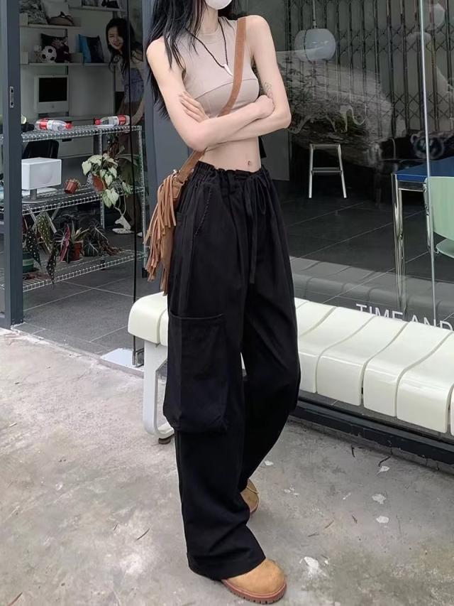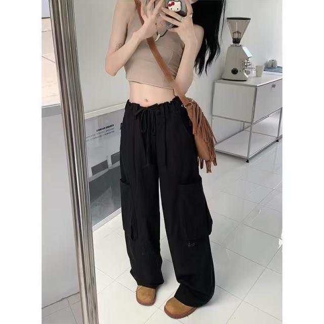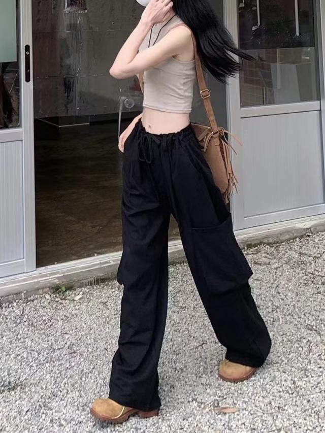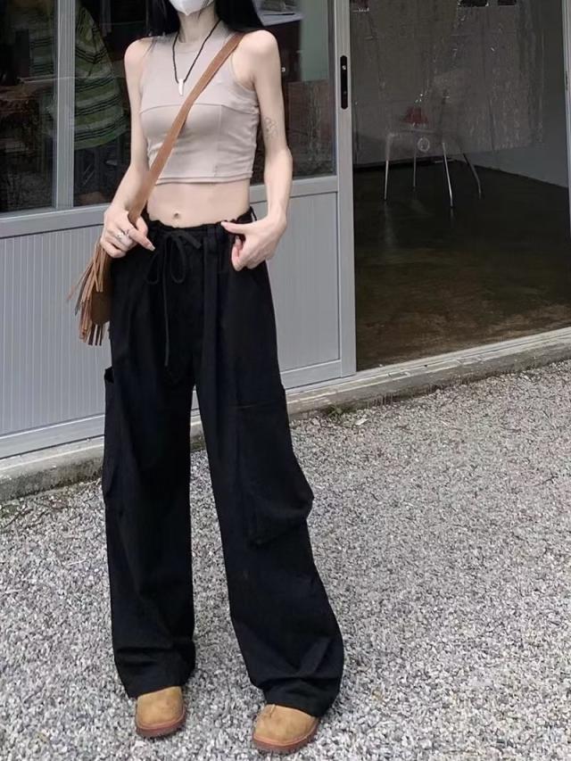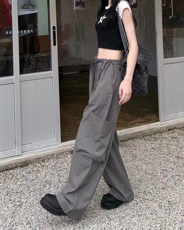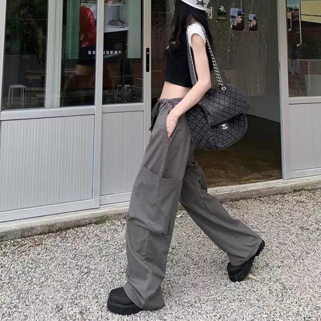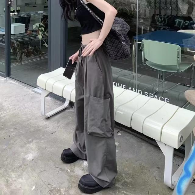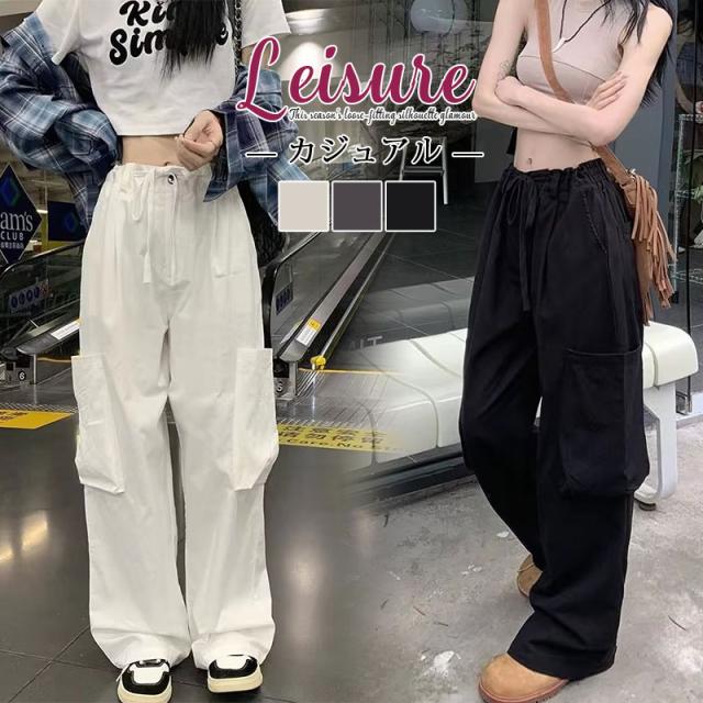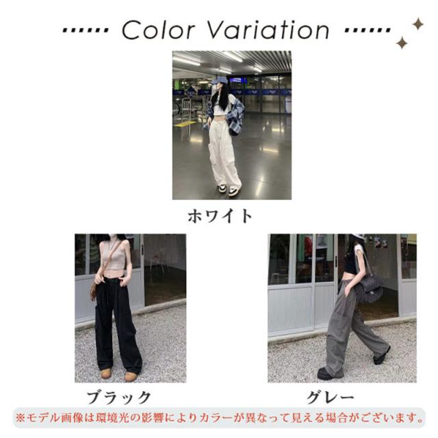 カーゴパンツ レディース ワークパンツ 原宿風 韓国風 ワイド ロングパンツ ボトムス ヒップホップ ダンス衣装 ストリート系 カジュアル 春夏秋