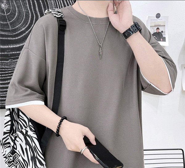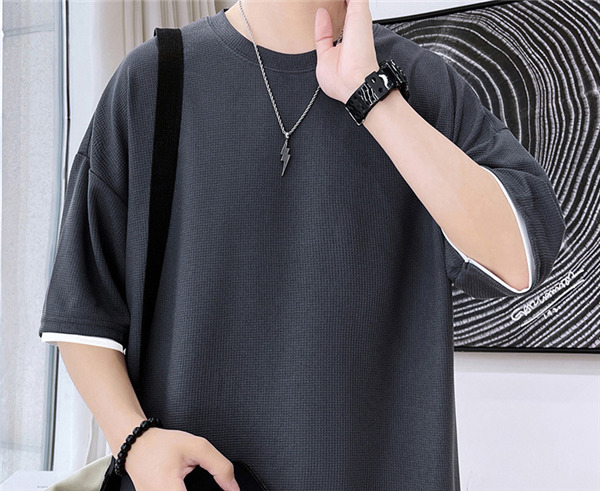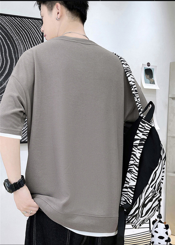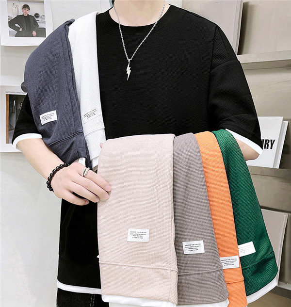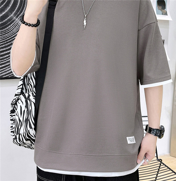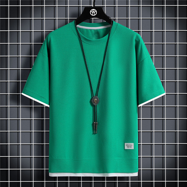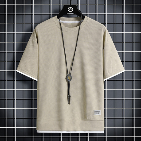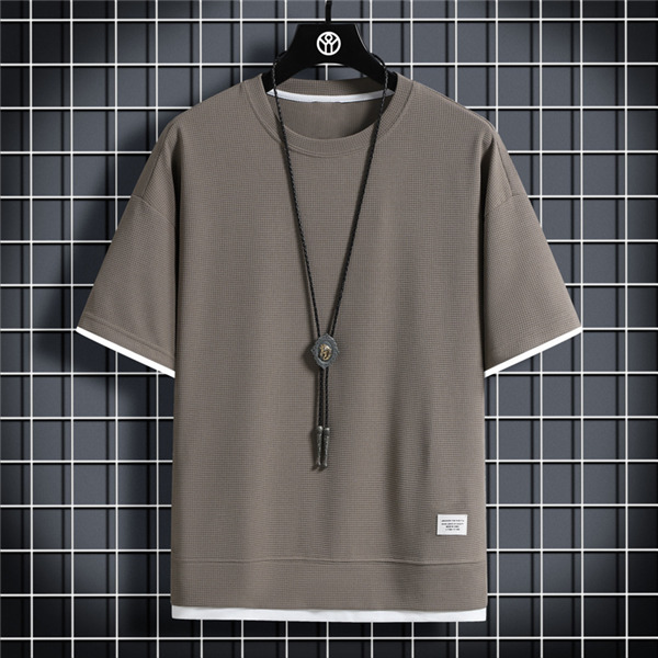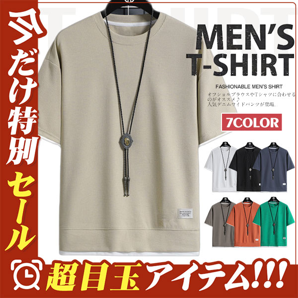 Tシャツ メンズ 無地 半袖Tシャツ ティーシャツ ワッフル トップス 通気性 夏服 重ね着風 大きいサイズ お兄系 父の日 プレゼント 涼しい