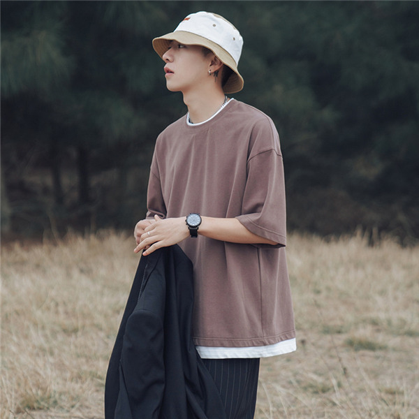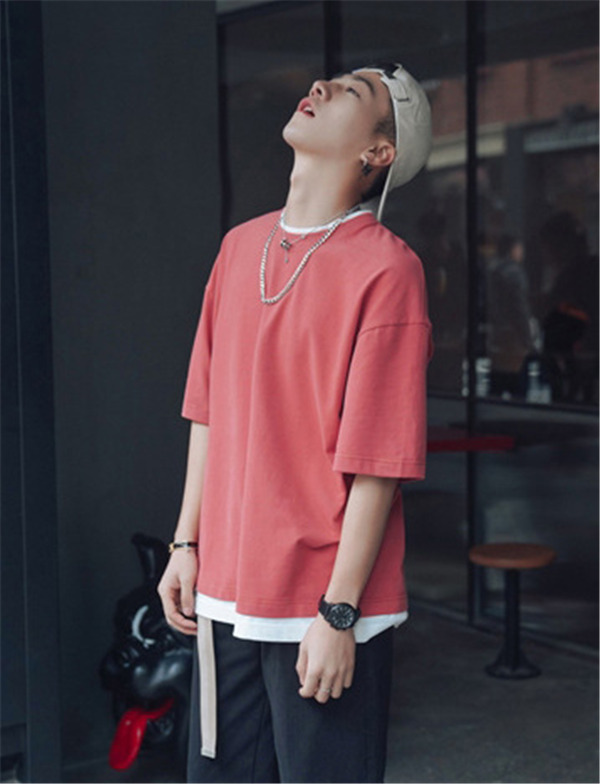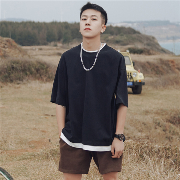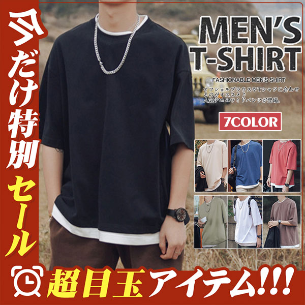 Tシャツ メンズ 半袖 レイヤード風 重ね着 韓国風 カットソー カジュアル プルオーバー トップス 春夏 おしゃれ 薄手 お兄系 メンズファッション