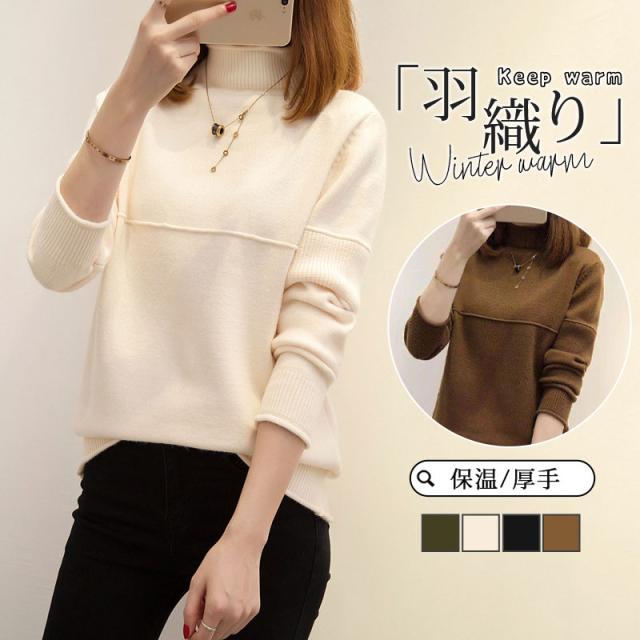 ニット レディース トップス セーター ハイネック 暖か タートルネック カジュアル ショット丈 セーター 厚手 伸縮性 無地 保温 細身 送料無料