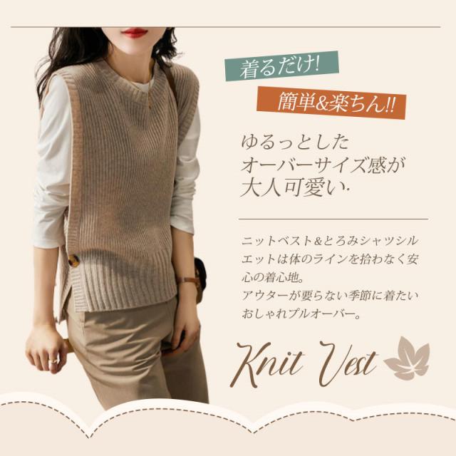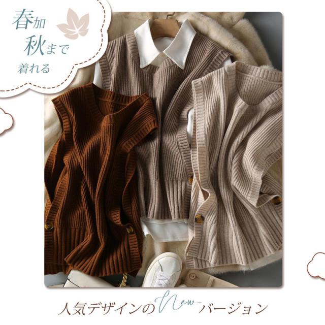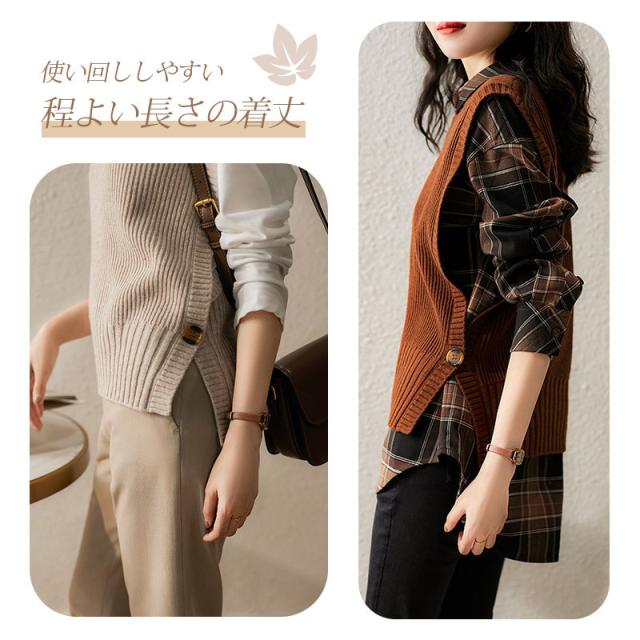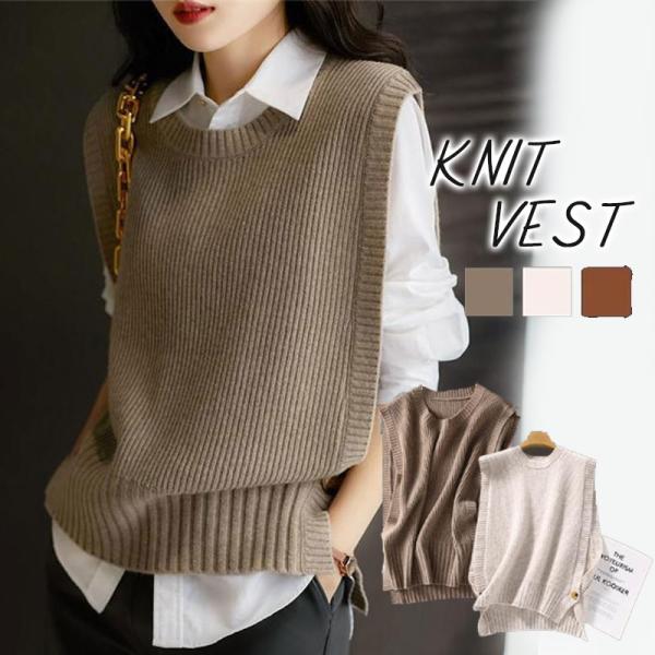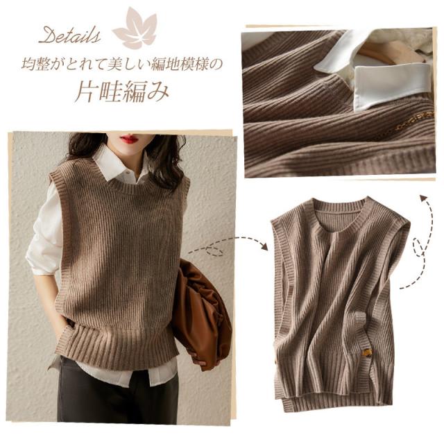 【キーワード】ニットベスト レディース 40代 春秋冬 ベストセーター ノースリープ 無地 Vネック ニットベスト スリット カジュアル韓国風 ゆったり 通勤 着痩せ 体型カバー 秋
