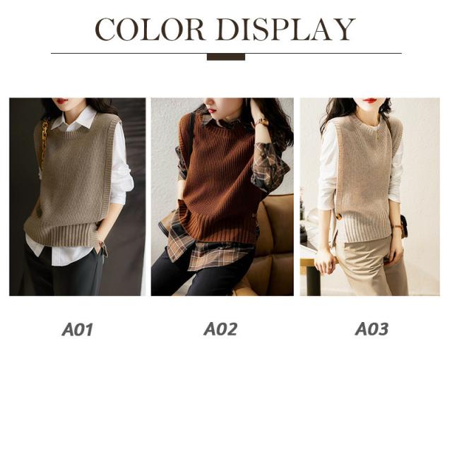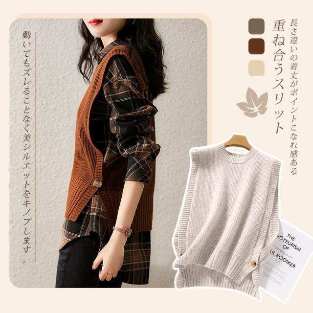 ニットベスト レディース ベストセーター スリット プルオーバー レイヤード 重ね着 通勤 おしゃれ 体型カバー 秋服 無地 カジュアル 着痩せ