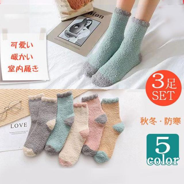 靴下 3足セット モコモコ ルームソックス レディース もこもこ ソックス 可愛い くつ下 フットウエア 室内履き 暖かい あったか 冬 ふわふわ