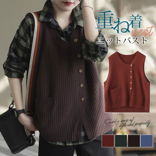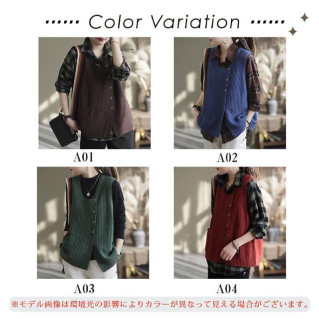 人気 ニットベスト レディース トップス 女性 チョッキ ノースリーブ ジレー セーター コーデ 秋冬 重ね着 ゆったり 韓国 おしゃれ 送料無料