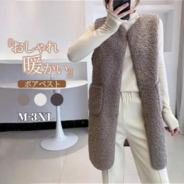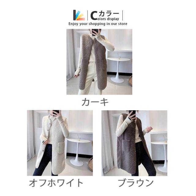 ロングベスト ボアベスト フェイクファーベスト ファー コート 体型カバー アウター ベスト レディース ノーカラー ジャケット カジュアル 羽織り