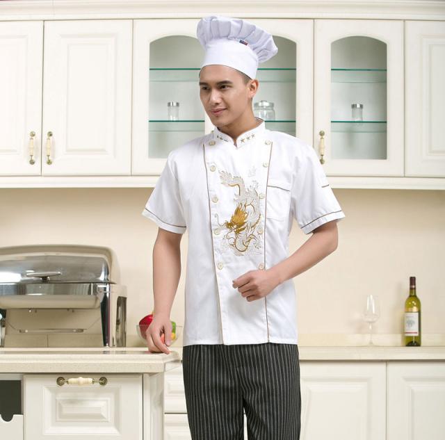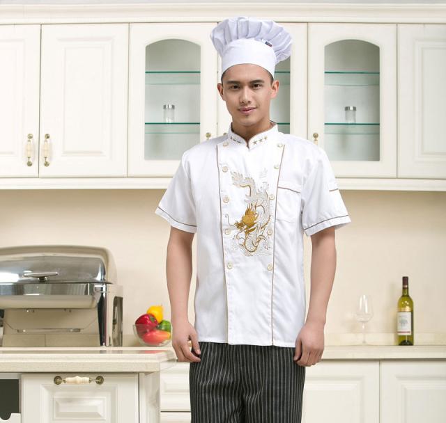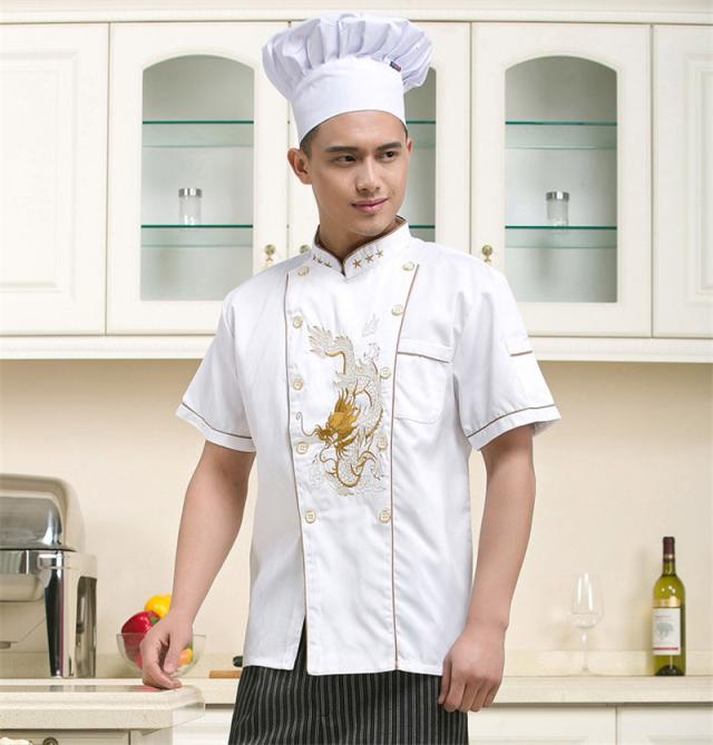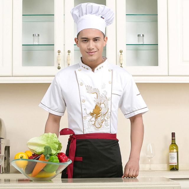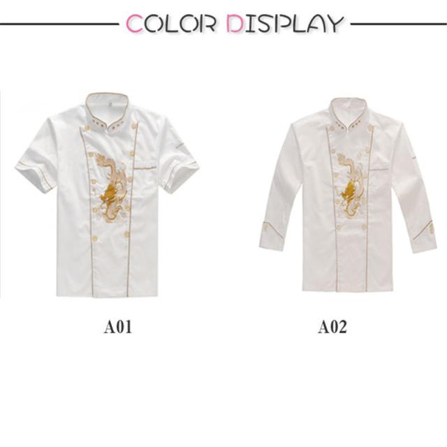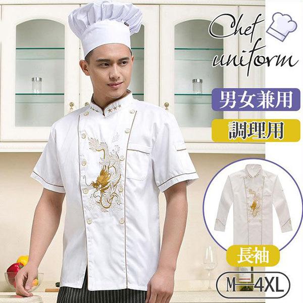 コックコート コックシャツ 半袖 男女兼用 刺繍 龍柄トップス 厨房白衣 コック服 調理服 カフェ ユニフォーム キッチン厨房 レストラン 制服