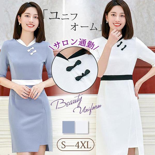 ユニフォーム エステ サロン 通勤 レディース ワンピース 女性 制服 おしゃれ 半袖 美容 歯科衛生士 制服 理容室 マッサージ ネイル 化粧品販売