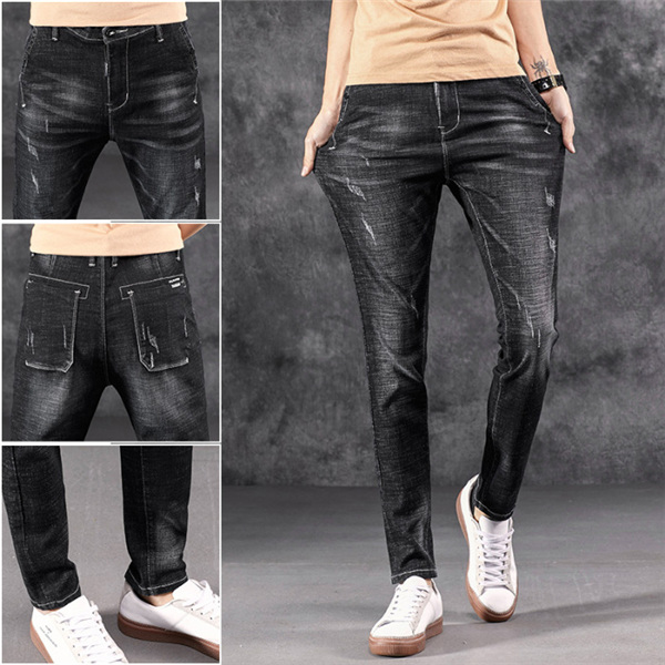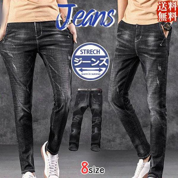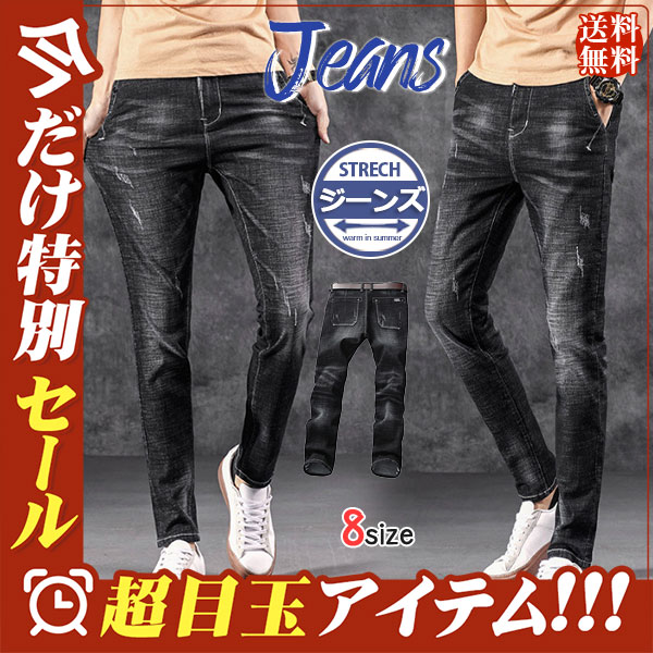 デニムパンツ ダメージ デニム おしゃれ ジーパン スキニースキニージーンズ ダメージ加工 ストレッチパンツ 黒 おしゃれ 送料無料 通学 無地