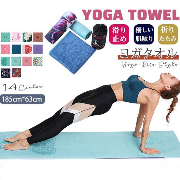 【一部即納】ヨガタオル ヨガラグ ヨガマットタオル 滑らない 折りたたみ ホットヨガ タオル マット 収納袋付き 柄 おしゃれ マイクロファイバー 軽量 新生活