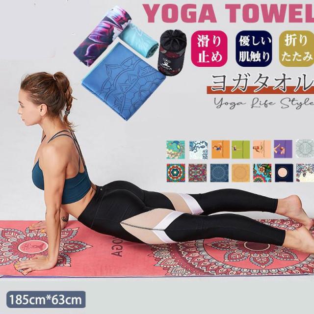 ヨガタオル 滑り止め ヨガラグ 洗える 大判タオル マット 補助道具 軽量 柄物 吸水 ホットヨガ フィットネス 新生活応援 ダイエット