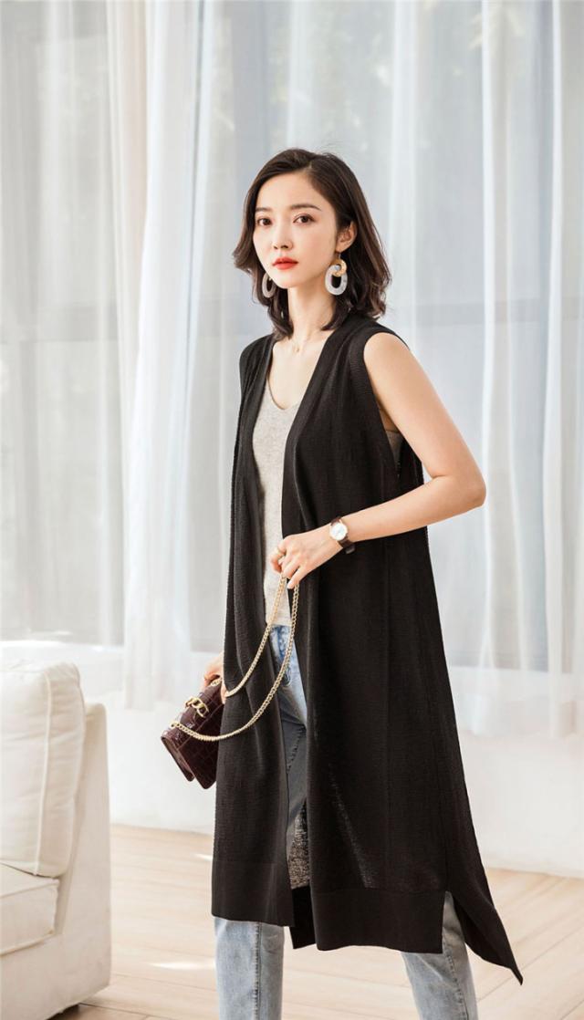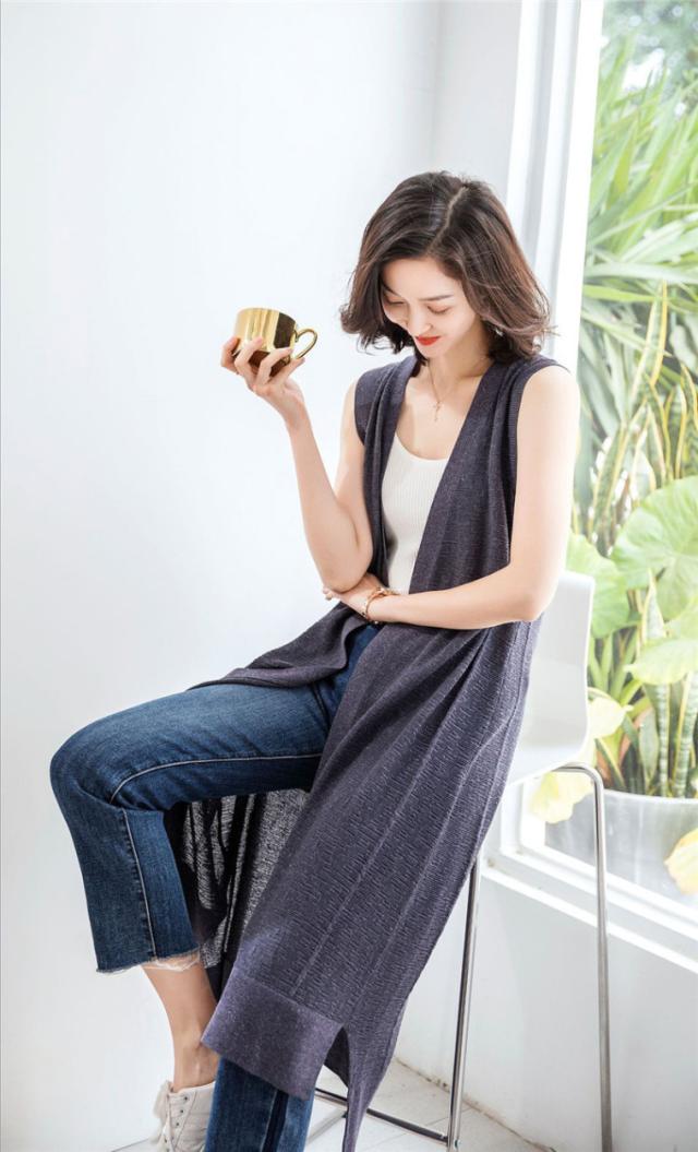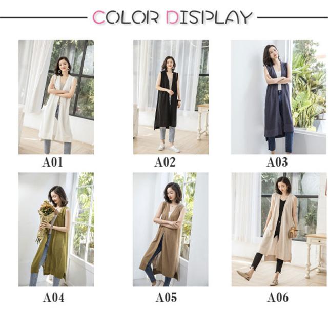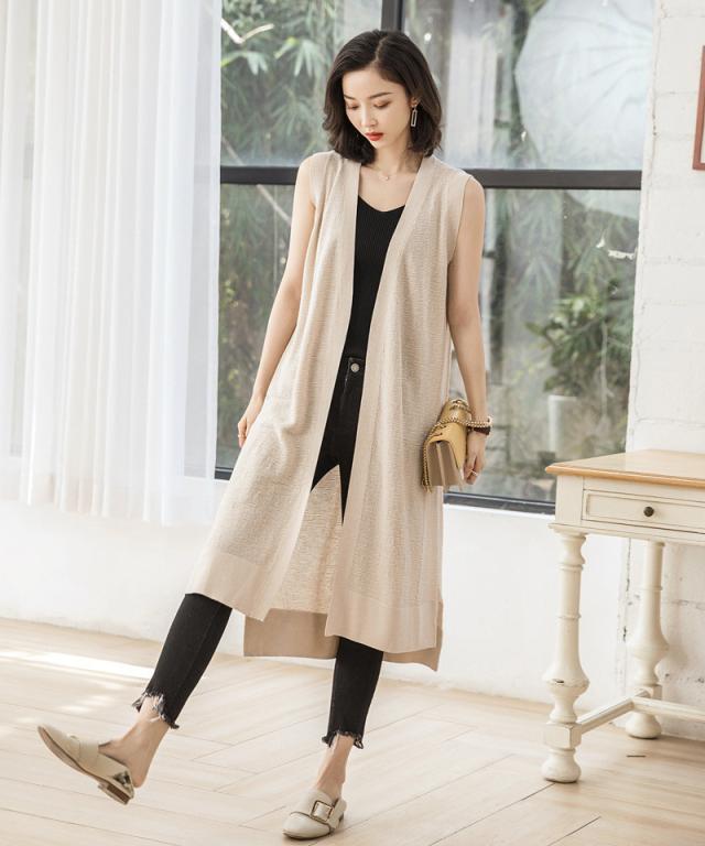 ジレ レディース ロングベスト ニットベスト リネン風 チョッキ 春夏 ノースリーブ 薄手 前開き ゆったり 体型カバー 涼しい 着回し